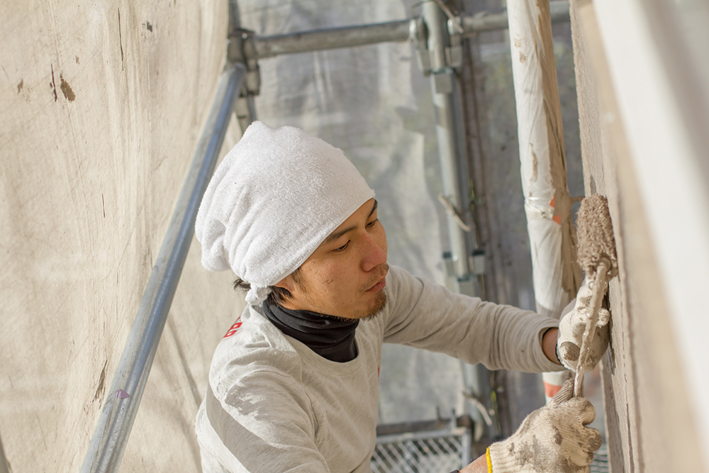 見えないところまでしっかりやります!下処理を適切に行うことで、経年劣化を抑えることができます。下塗り、中塗り、上塗りの3回塗りによって、塗膜に厚みを出し、丈夫で美しくしっかりと長持ちする塗装をめざしています。